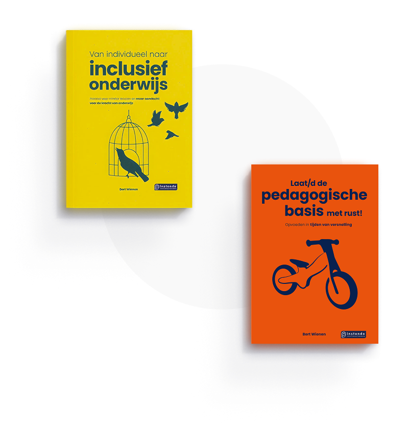 - Het boek “Van Individueel naar Inclusief Onderwijs” of het boek “Laat/d de pedagogische basis met rust” van Bert Wienen. Deze ontvang je tijdens de eerste masterclass.